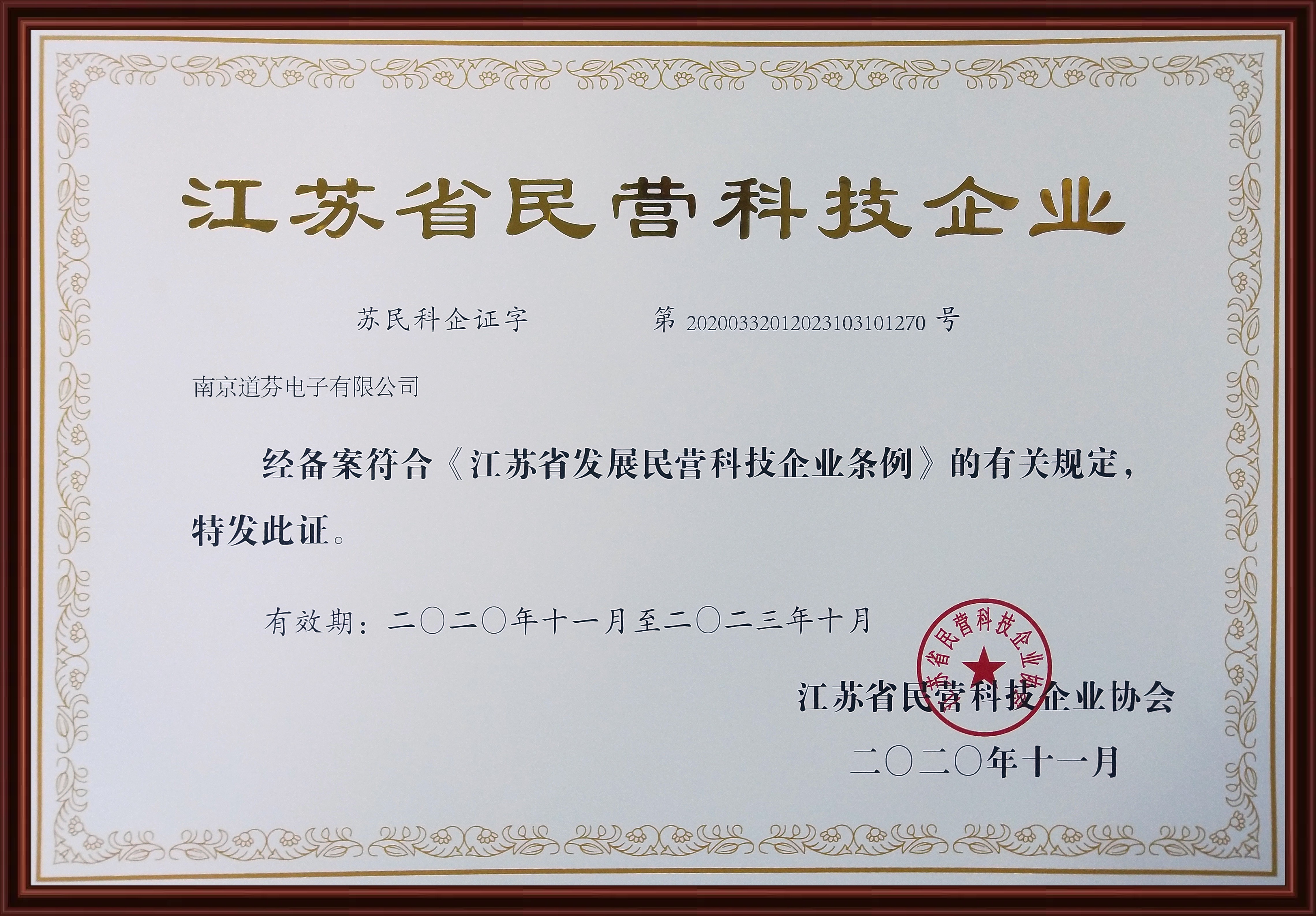 熱烈祝賀南京道芬獲得“2020江蘇省民營科技企業(yè)”稱號